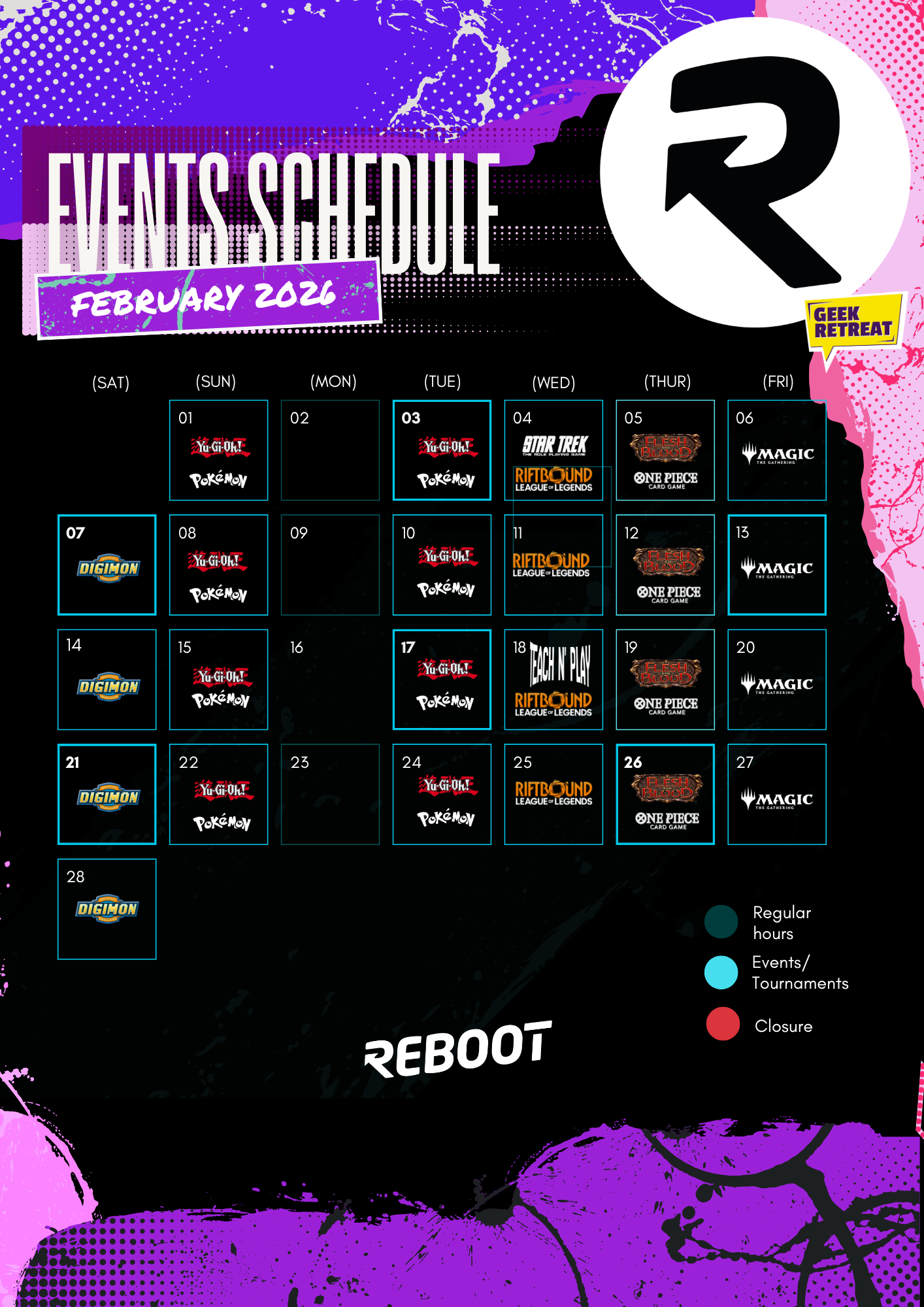 Spotlight on January at Reboot Café: our calendar is packed with exciting events, from board game nights to card tournaments and more. Whether you’re a regular or new to our community, there’s something for everyone to enjoy this month. Stay in the loop by following us on Instagram @rebootcafequb, joining our Discord group, or signing up for events using our contact number. Don’t miss out-connect with us and be part of the fun!
